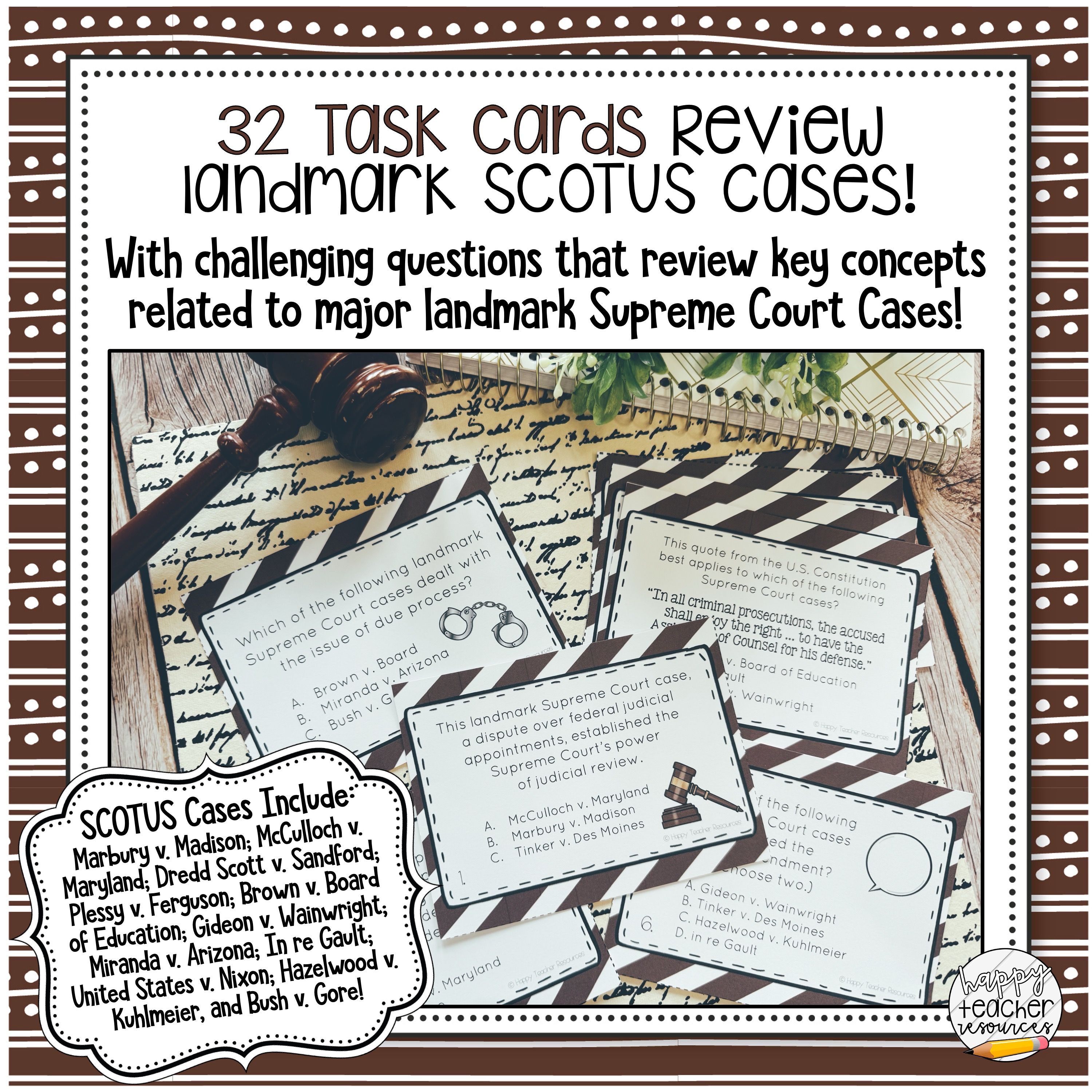 This set of 32 Landmark Supreme Court Cases Civics Task Cards includes: