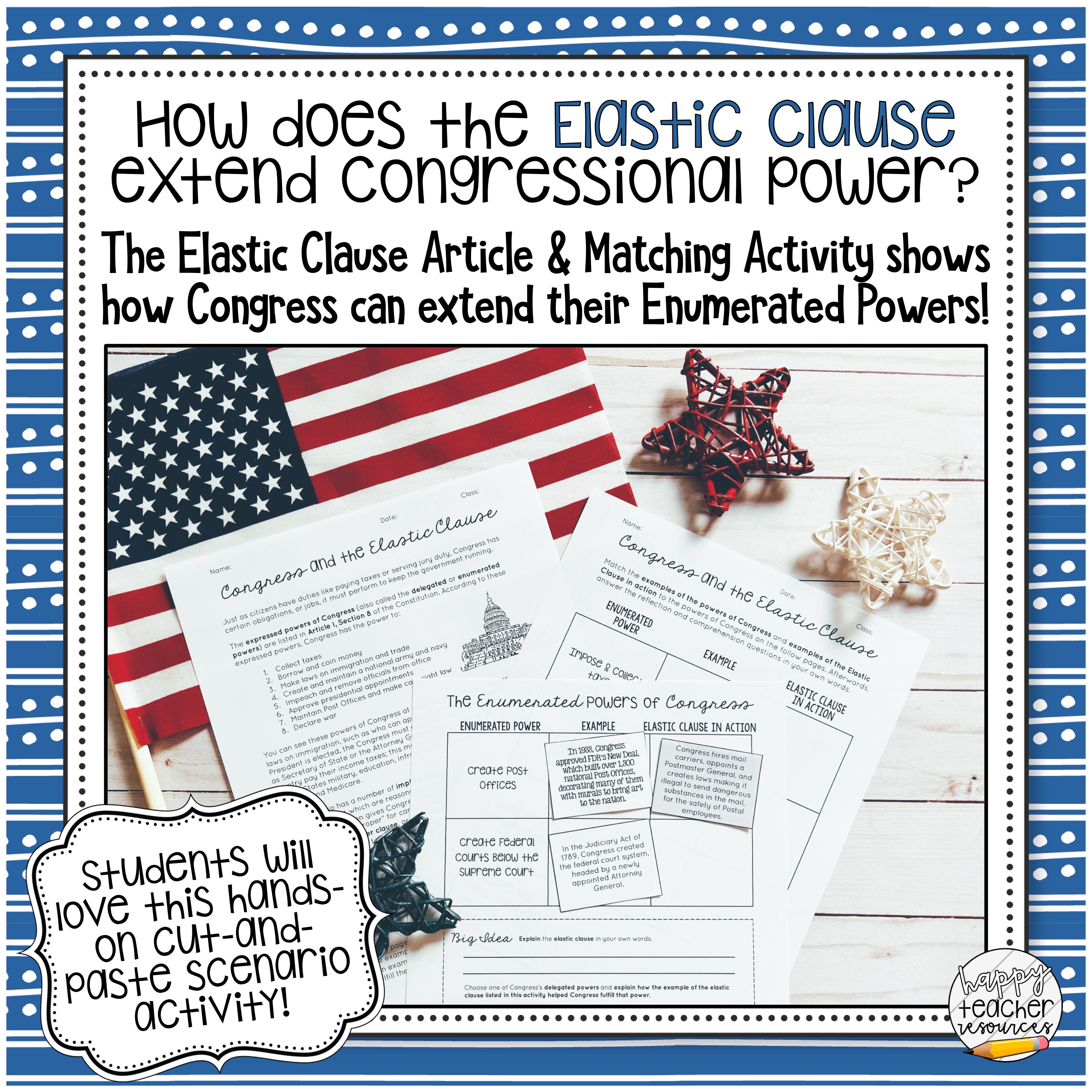 - The Elastic Clause can be a tricky concept for students to grasp, so this article goes more in depth into the Necessary and Proper Clause and how Congress has applied it. The matching activity then pairs real-life examples of the Elastic Clause in action to Congress’s respective Powers.