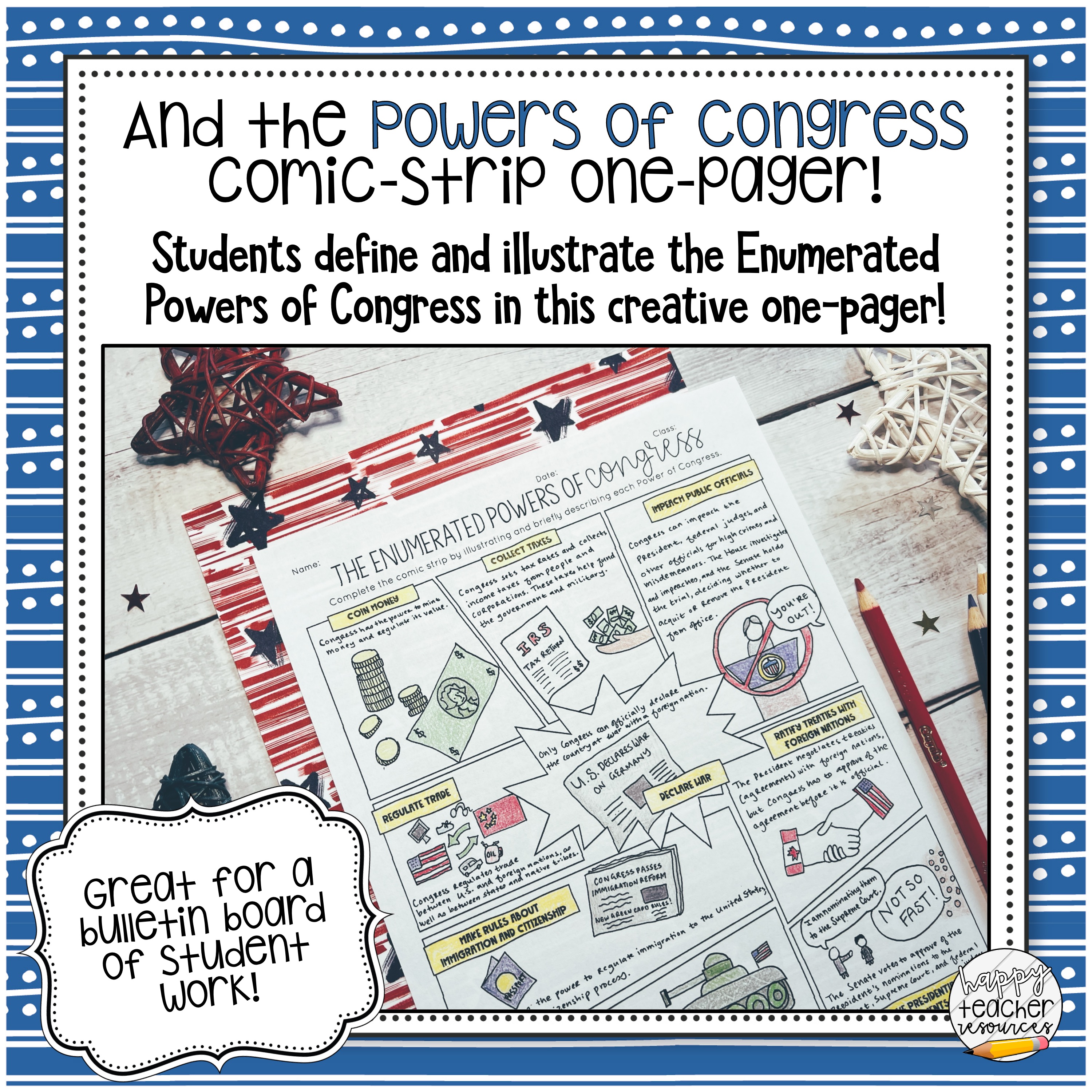 - This creative one-pager is a great way to cap off your Legislative Branch unit! Students illustrate the powers of Congress in an attractive comic strip. Rubric and example drawing included!