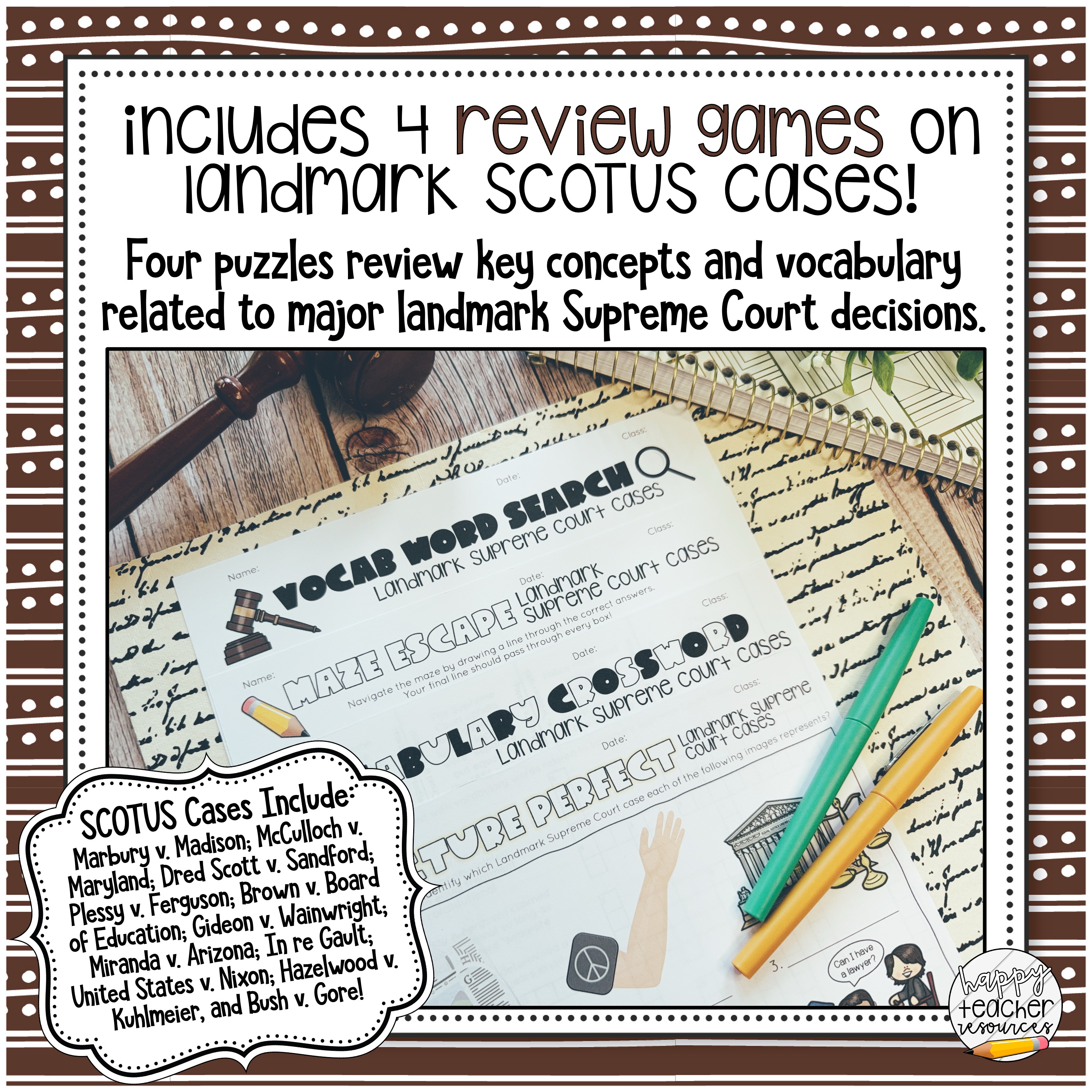 Landmark Supreme Court Cases Review Activities thumbnailLandmark Supreme Court Cases Civics & American History Review Activities
