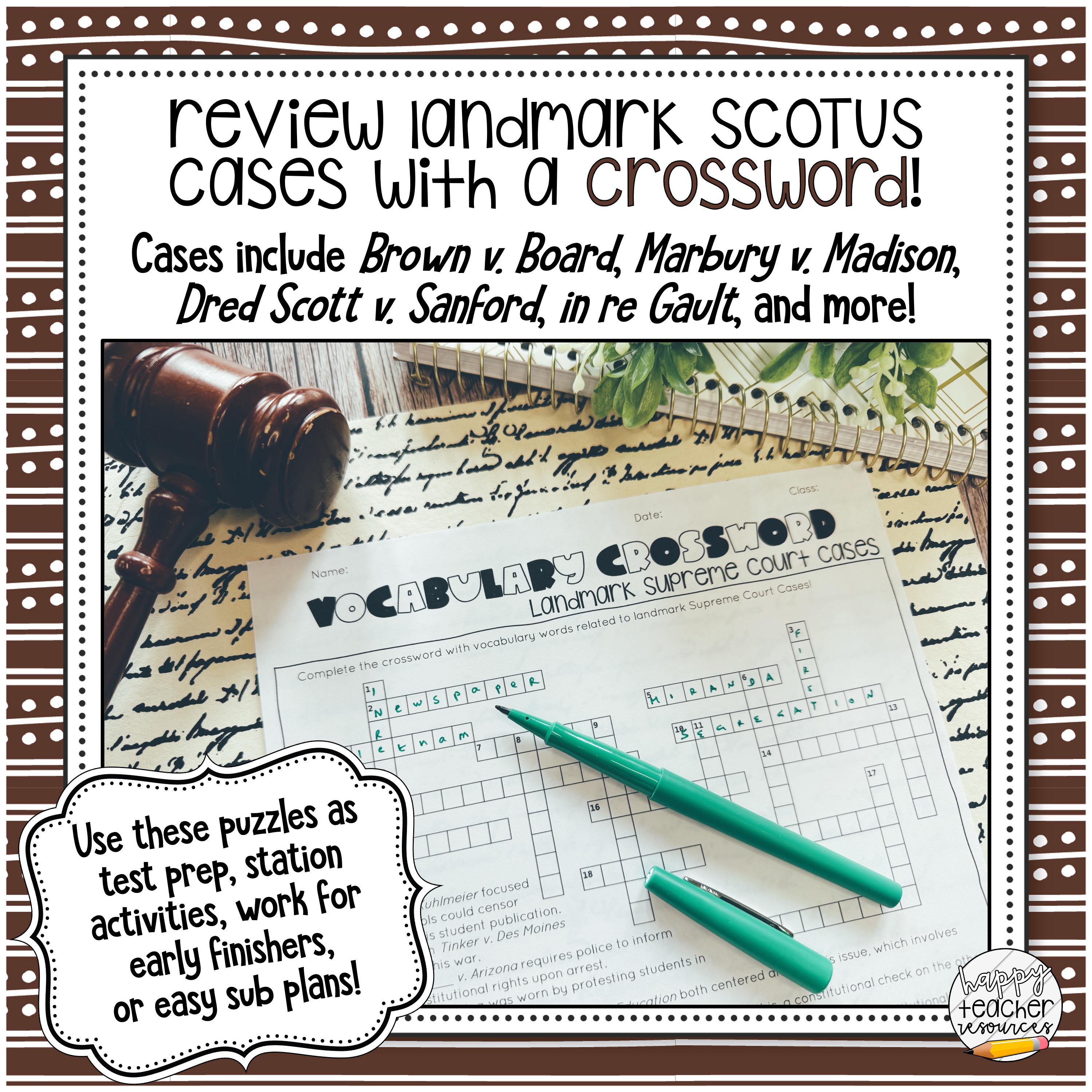 ✯ A Vocabulary Crossword with key words related to landmark Supreme Court Cases.