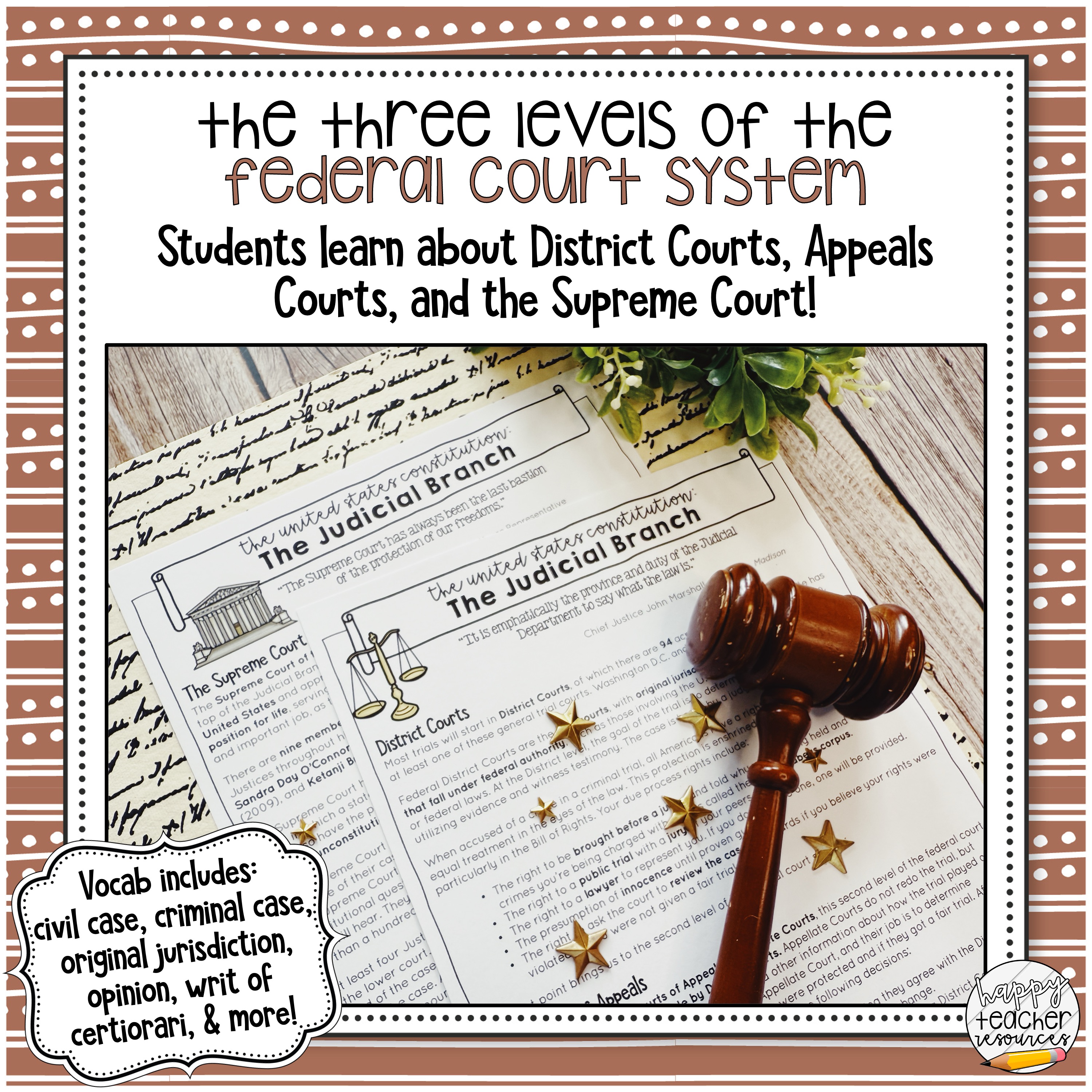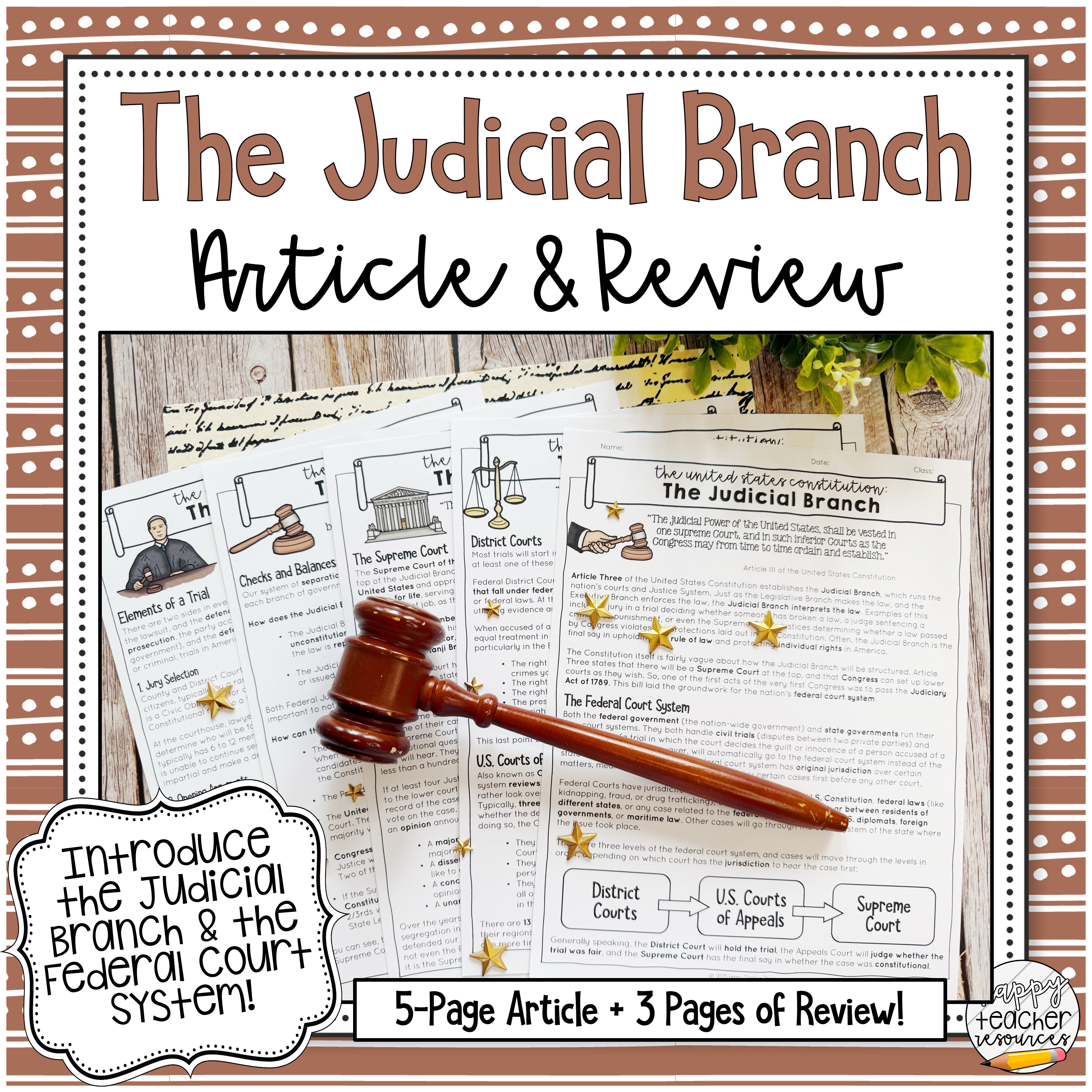 ✯ The 5-page Judicial Branch Article & Review. This engaging reading passage walks students through the main ideas of the Judicial Branch, the levels of the Federal Court System, the Supreme CourtChecks and Balances in relation to the Judicial Branch, and the trial process