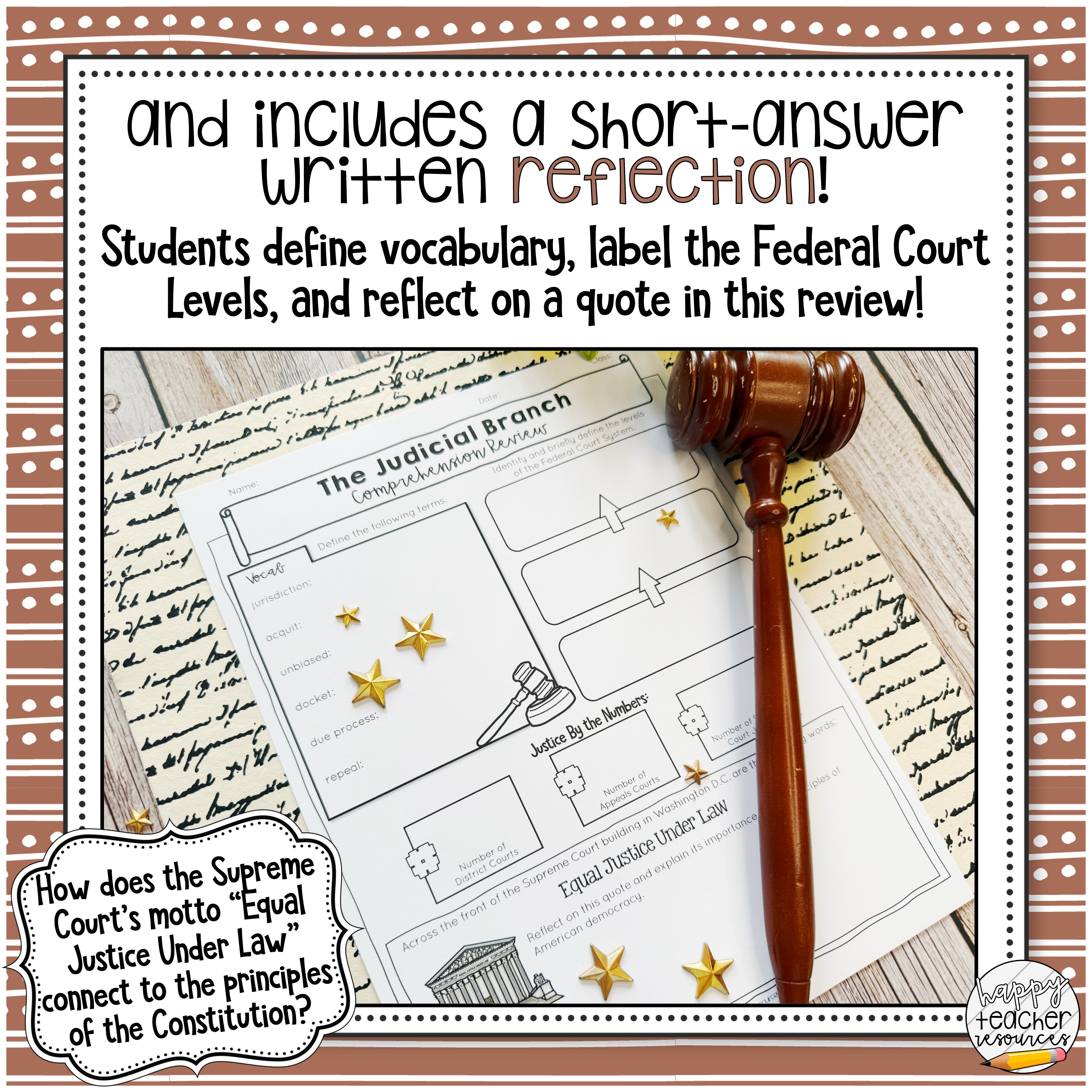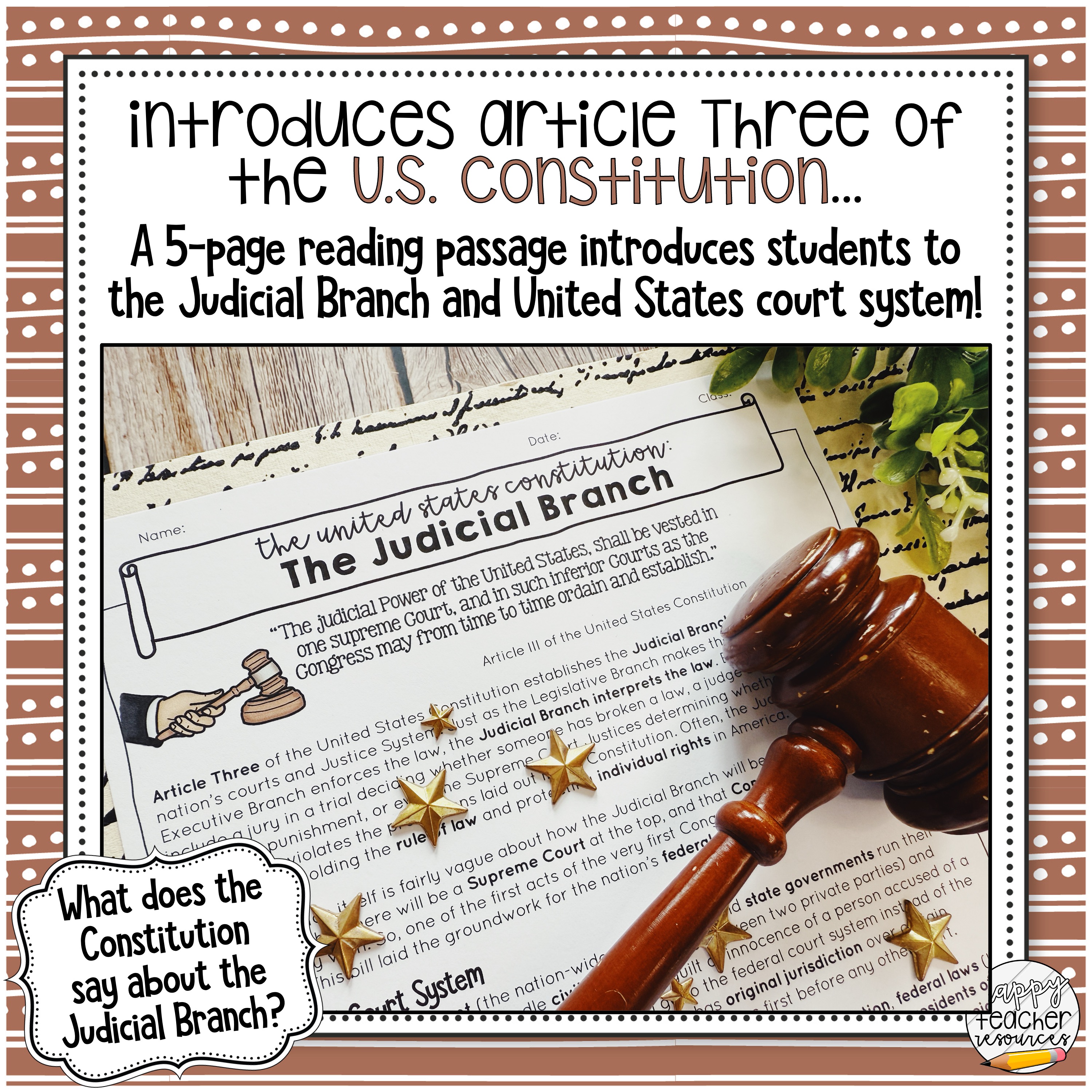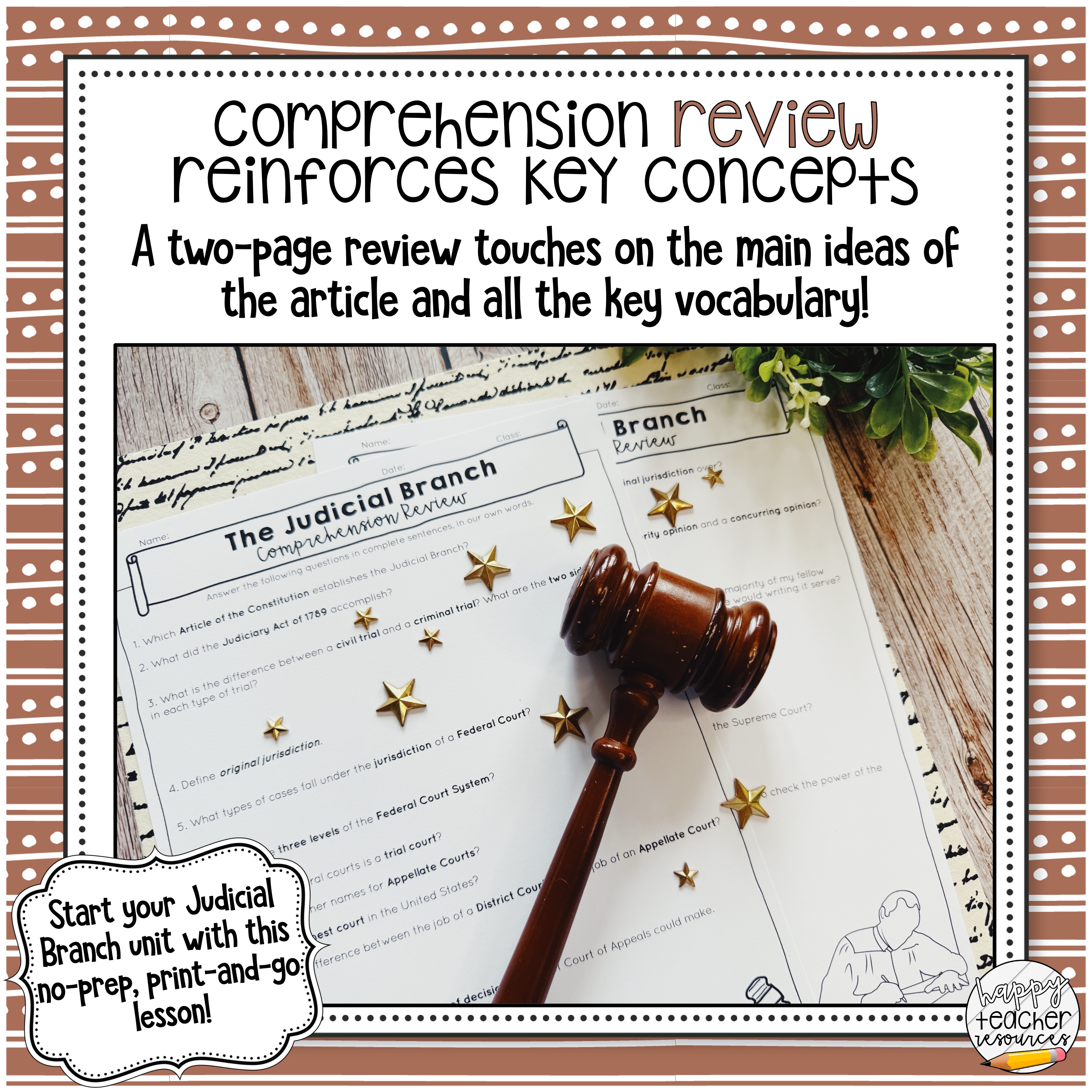 This Judicial Branch Article & Review for Civics & American History resource includes: